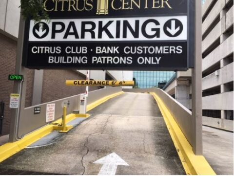 The Citrus Center is a Class-A office building located in Downtown Orlando in the Central Business District. The parking areas (Garage & Surface Lot) accommodates guests visiting building tenants, the Citrus Club (18th floor), event venues (Dr. Philips Center, Amway Center, etc.), and the evening bar/club crowd. Citrus Center Garage entrance off of Jackson Street. The Garage is only open from 5:00am-10:00pm and the Surface Lot is open 24/7.