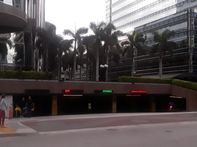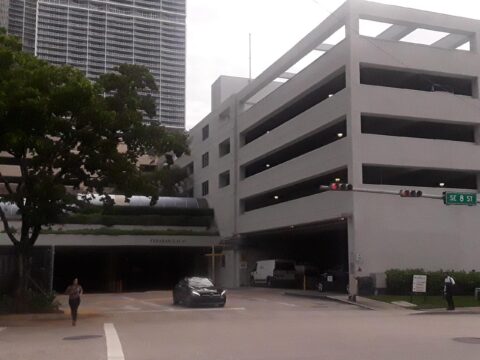 This garage has two entrances. The main entrance resides on Brickell Ave and 7th street. The other entrance is located off of 8th street if you are heading East towards Brickell Key. The garage is located at the base of the Bank Of America building in downtown Brickell Miami. Make sure you use the middle entrance when entering on 7th Street to avoid driving into the 777 Brickell building.