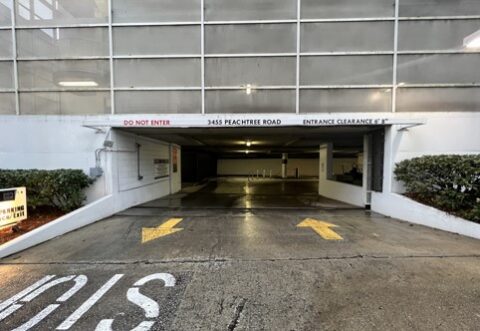 Pinnacle garage is located near St. Cecilia Restaurant, Lenox Market Place, Phipps Plaza and Lenox Mall. The garage has a total of three (3) entrances. One located on Peachtree Road (Circle-2nd Entrance), and two (2) located on Oak Valley Road. The garage is covered from Level B through 7. Levels 3 & 7 are partially uncovered. Level 8 is uncovered.